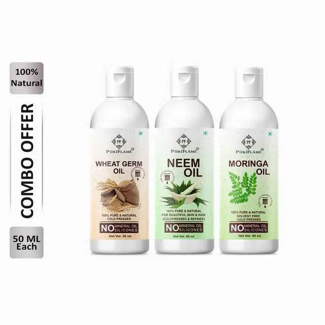 Puriflame Pure Wheat Germ Oil, 50 ml, Neem Oil, 50 ml & Moringa Oil, 50 ml Combo for Rapid Hair Growth, Pack Of 3, B-14317 @ ₹295 - Buy Online at CityMall