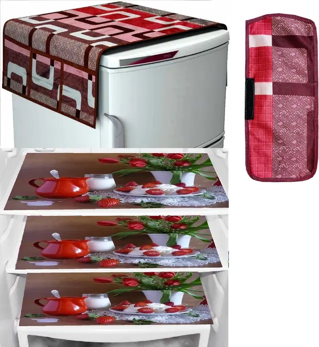 PVC Fridge Top Cover with 6 Utility Pockets & Handle Cover with 3 Pcs Shelf Mats, Multicolor, Set of 1 - Buy Online at CityMall