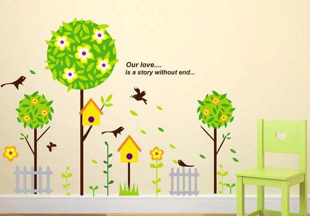 Pvc Vinyl Tree With Colorful Leaves With Birds Home Our Love Never Ends Sticker, L-023