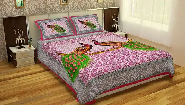 Rajasthani Traditional Cotton Bedsheet With 2 Pillow Covers, Pink, 465 X 94 Inch, Mc-380