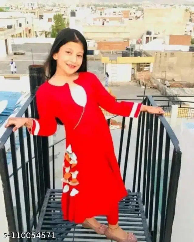 Rayon Embroidered Anarkali Kurti with Pant Set for Girls (Red, 7-8 Years) - Buy Online at CityMall