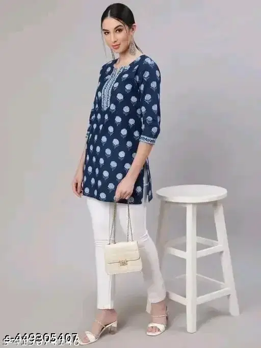 Rayon Block Print Short Kurti for Women, Blue (XS) - Buy Online at CityMall