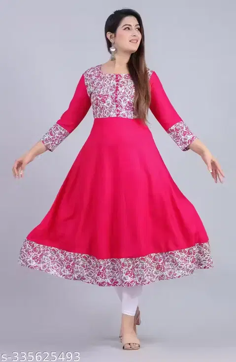 Rayon Printed Anarkali Kurti for Women, Pink ( L) @ ₹259 - Buy Online at CityMall
