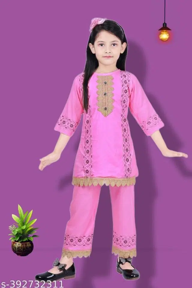 Rayon Printed Kurta with Pant for Girls (Pink, 6-7 Years) @ ₹278 - Buy Online at CityMall