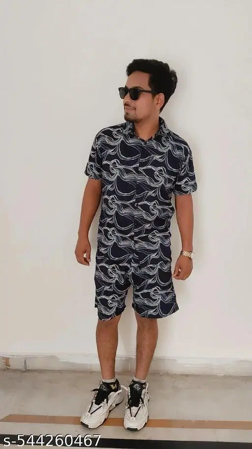 Name: tranding shirts and shorts Top Fabric: Rayon Bottom Fabric: Rayon Top Type: Shirt Bottom Type: Shorts Sleeve Length: Short Sleeves Top Pattern: Printed Bottom Pattern: Printed Net Quantity (N): 1 Sizes: M (Top Chest Size: 38 in, Top Waist Size: 38 in, Top Length Size: 27 in, Shoulder Size: 17 in, Bottom Waist Size: 30 in, Bottom Length Size: 17 in) L (Top Chest Size: 40 in, Top Waist Size: 40 in, Top Length Size: 28 in, Shoulder Size: 18 in, Bottom Waist Size: 32 in, Bottom Length Size: 18 in) XL (Top Chest Size: 42 in, Top Waist Size: 42 in, Top Length Size: 29 in, Shoulder Size: 19 in, Bottom Waist Size: 34 in, Bottom Length Size: 18 in)
