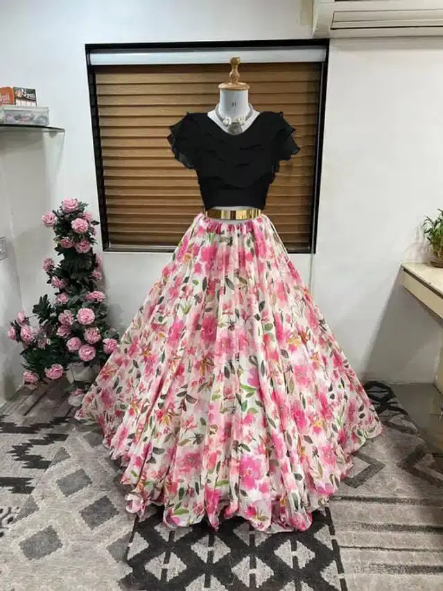 Digital Print Full Length Flared Anarkali Lehenga Pure Georgette Fabric For Size Adjust Dori Tie Up Most Trendy Design Stiched Flared BlouseLight Weight GeorgetteLess WrinkleEasy To Washable*Comfortable For Long Hours Wear