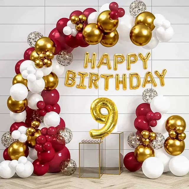 Red & Gold Theme 9th Birthday Balloon Decoration Kit , Multicolor, Pack Of 68 - Buy Online at CityMall