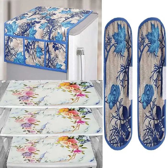 Package content : 1 Fridge Top Cover (Premium Quality) , 2 Handle Covers , 3 Piece Fridge Mats