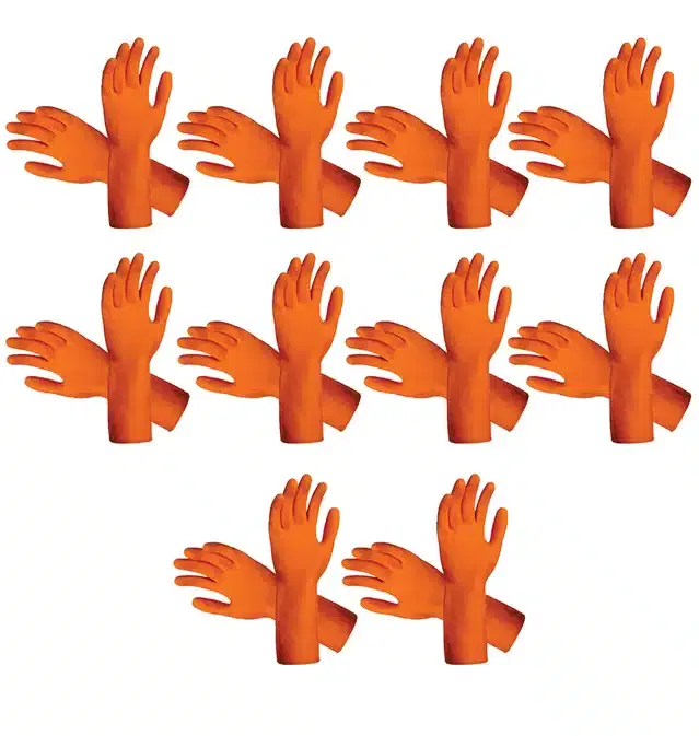 Reusable Hand Gloves for Cleaning, Orange, Set of 10 - Buy Online at CityMall