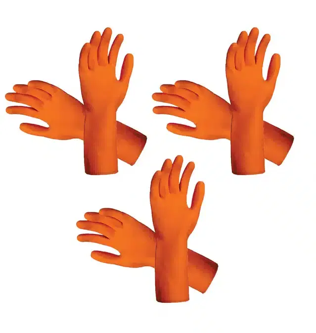 Reusable Hand Gloves for Cleaning, Orange, Set of 3 - Buy Online at CityMall