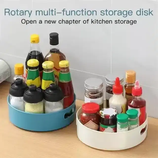 360° revolving tray provides organized, easy-access to hard-to-reach items. High Grade Plastic material, open and large size gives you more space and organization. Great for putting on table-tops, in fridges, and in cabinets to help store and organize spices, milks, shampoos etc. Perfect for home storage.