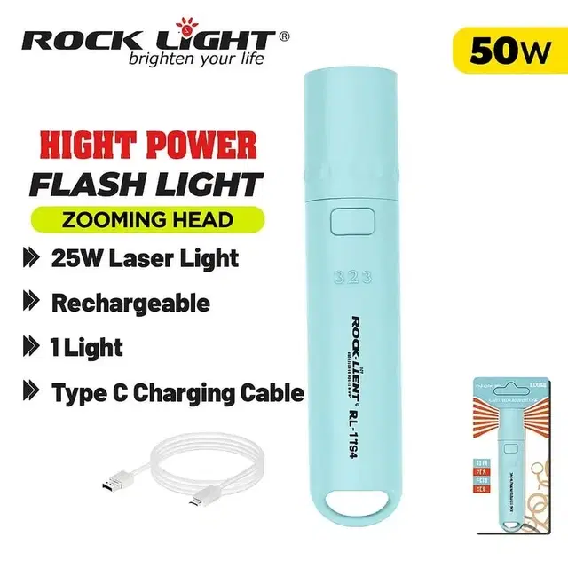 Experience unmatched brightness with the Rocklight RL-1184, a compact yet powerful 50W / 25W laser torch designed for every situation. Whether you're camping, working, or facing a power cut, its sharp beam cuts through the dark with ease.