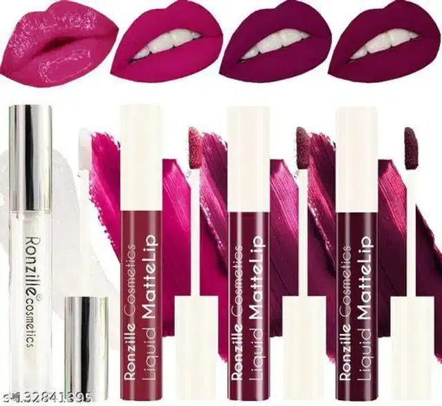 Name: RONZILLE Matte liquid lipstick Non Transfer plus With Lip gloss Purple Edition Pack of 4