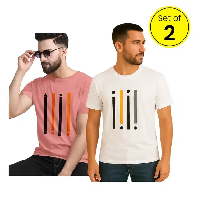 Round Neck T-Shirt for Men, Pack of 2, Peach & White (XL) - Buy Online at CityMall