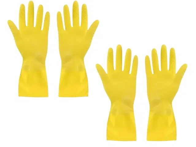 Rubber Cleaning Hand Gloves for Home, Yellow, Set of 2