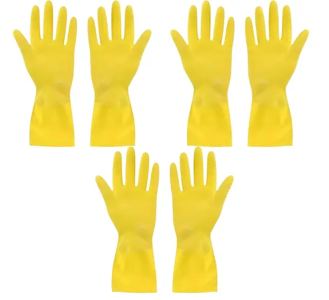Rubber Cleaning Hand Gloves for Home, Yellow, Set of 3