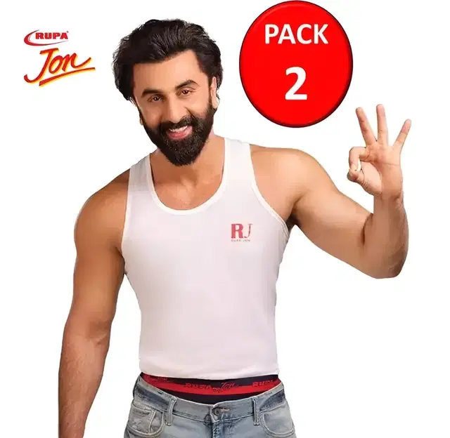 Rupa Cotton Solid Vest for Men, Pack of 2, White (95 cm) - Buy Online at CityMall