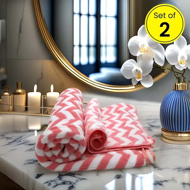 Safina Hand & Bath Towel Set Pack of 2 Chevron Pink - Buy Online at CityMall