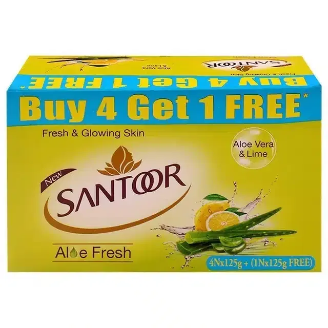 Santoor Aloe Vera and Lime Fresh Soap 5X125 g (Buy 4 Get 1 Free) - Buy Online at CityMall