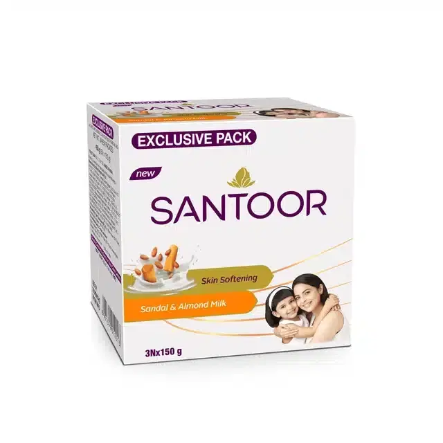 Santoor Sandal & Almond Milk Skin Softing Soap 3X150 g (Pack Of 3) - Buy Online at CityMall
