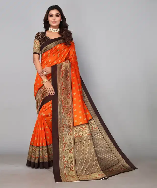 Saree with Unstitched Blouse for Women (Orange) - Buy Online at CityMall