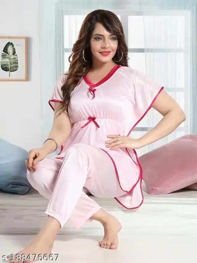 Satin Nightsuit for Women (Baby Pink, XL) - Buy Online at CityMall