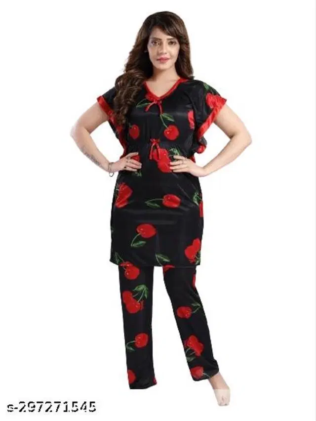 Satin Nightsuit for Women (Black & Red, XXL) - Buy Online at CityMall