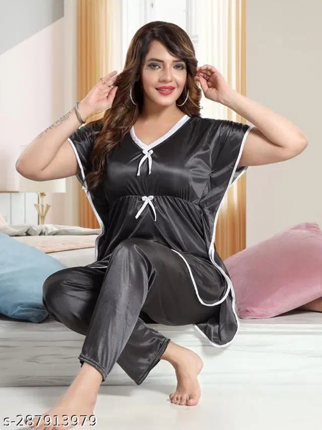 Satin Nightsuit for Women (Black, XXL) - Buy Online at CityMall