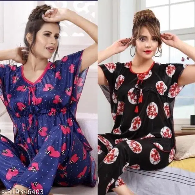 Satin Nightsuit for Women, Pack of 2 (Navy Blue & Black, XL) - Buy Online at CityMall