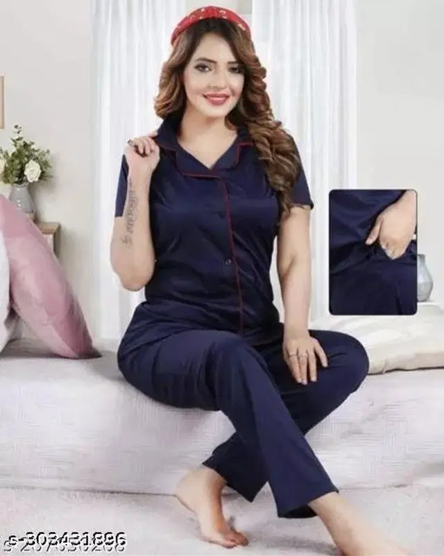 Satin Nightsuit for Women (Navy Blue, L) - Buy Online at CityMall