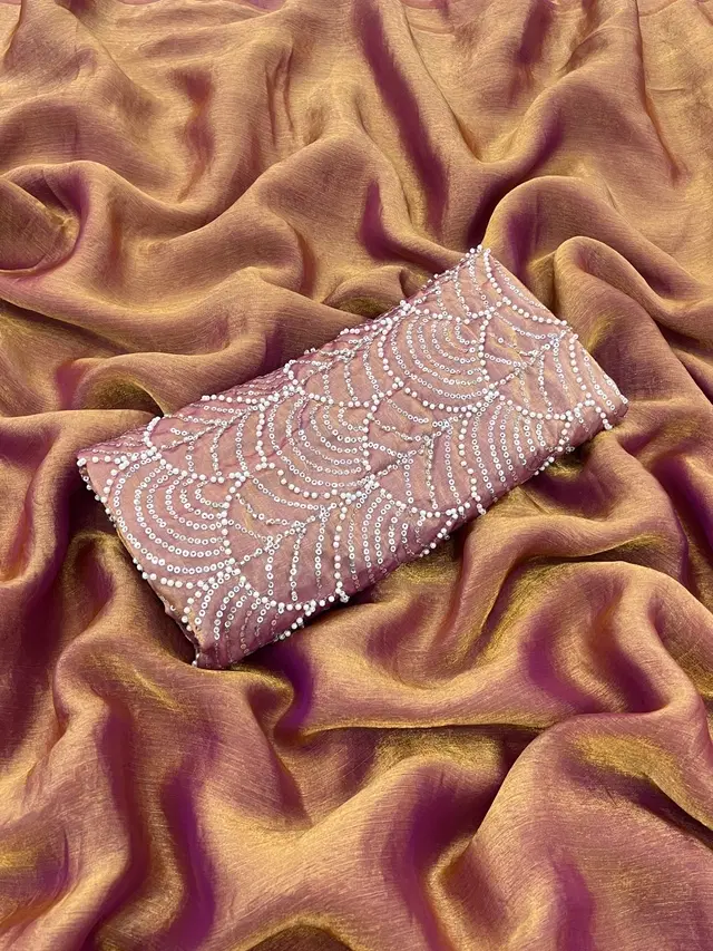 Gullak Women's Crape saree with embroidery and hand work design blouse