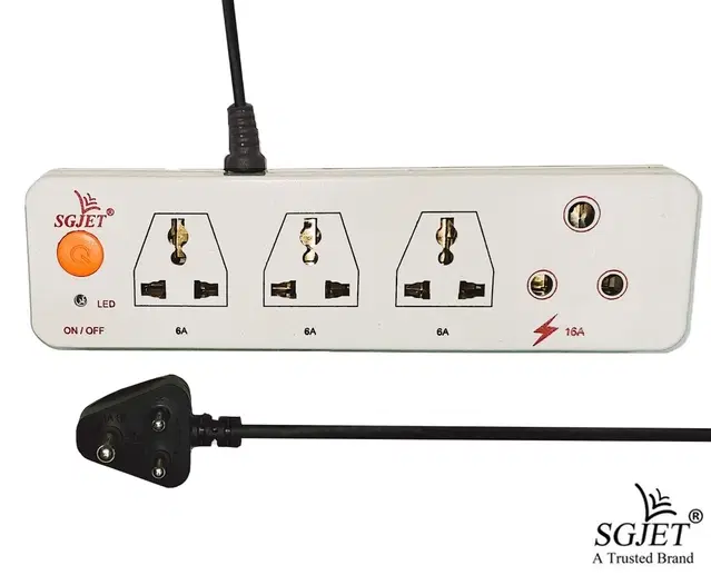 SGJET 3 UNIVERSAL SOCKET 6A, No 1. Socket 16 A with high quality ISI marked 2 mtr copper wire Extension Boards, White - Buy Online at CityMall