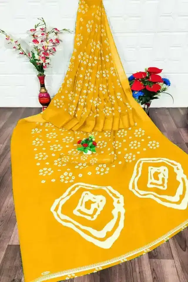 Sharda Creation Linen Bandhani Printed Sarees (Yellow) (Sharda_423) - Buy Online at CityMall