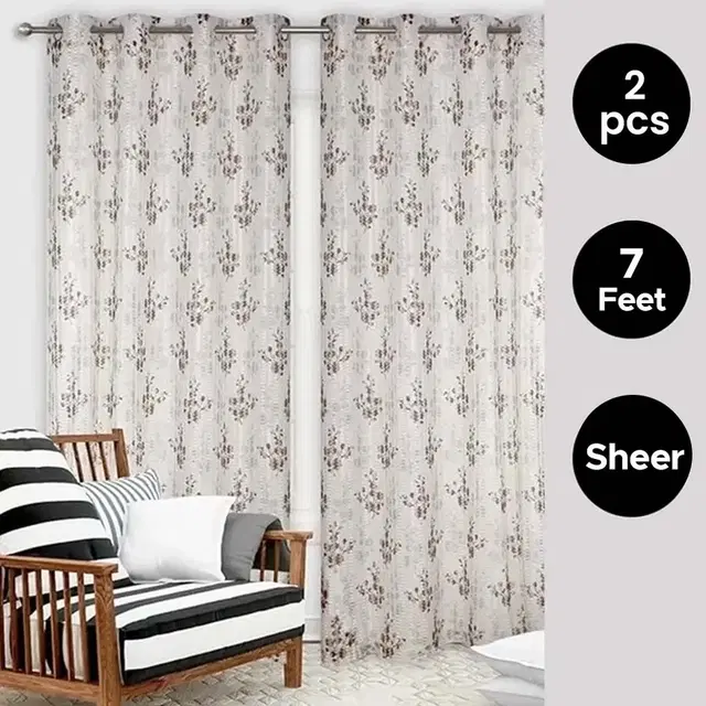 Sheer Floral Branches Printed Brown Door Curtain 7ft Combo (Pack of 2) - Buy Online at CityMall