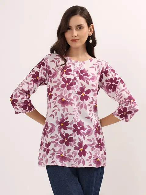 Womens Floral Print Short Rayon Kurti, White (M) @ ₹139 - Buy Online at CityMall
