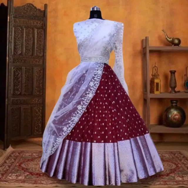 Silk Blend Embroidered Semi Stitched Lehenga for Women (Maroon) @ ₹899 - Buy Online at CityMall