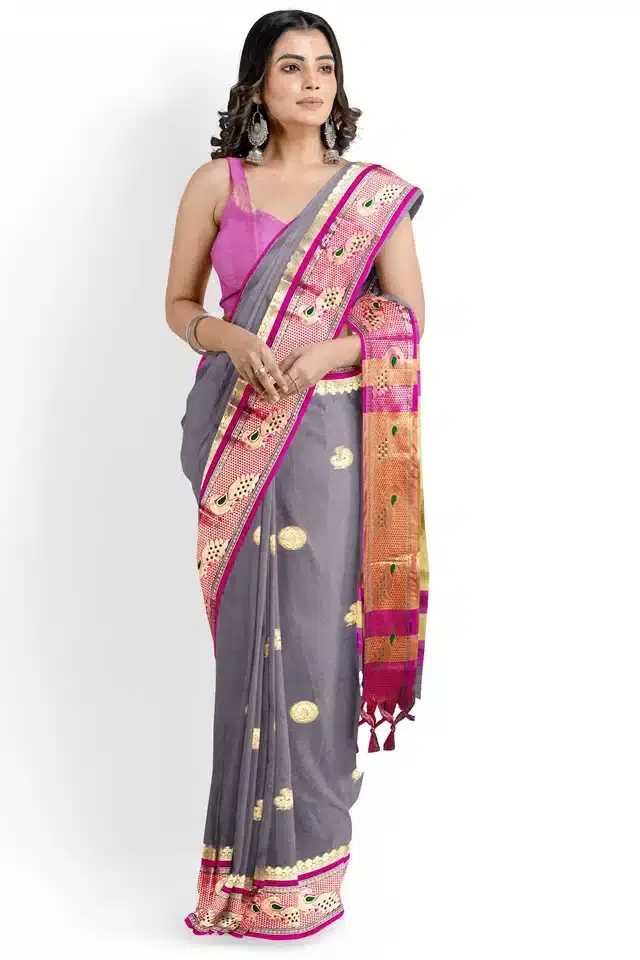 Silk Solid Saree for Women (Grey, 6.3 m)