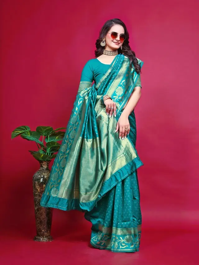 Silk Woven Design Saree for Women, Teal (6.3 m) @ ₹427 - Buy Online at CityMall
