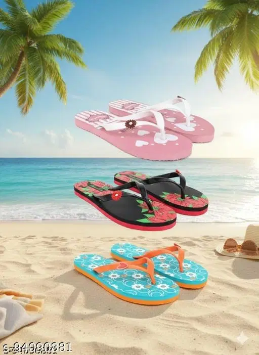 Name: Phonolite Daily use Casual wear Hawaii chappal slipper Flexible Home use Light in weight Printed Comfortable for all day flip flop for women and girls pack of 3