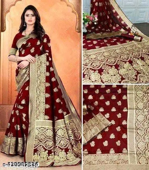 Soft Silk Zari Woven Saree for Women (Maroon, 6.3 m) @ ₹523 - Buy Online at CityMall