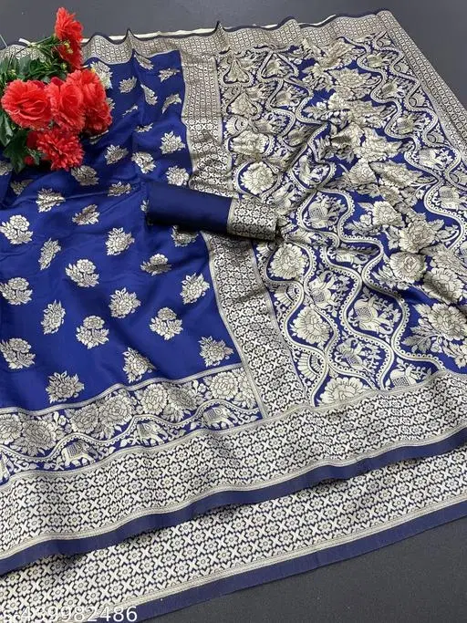 Soft Silk Zari Woven Saree for Women (Navy Blue, 6.3 m) @ ₹509 - Buy Online at CityMall