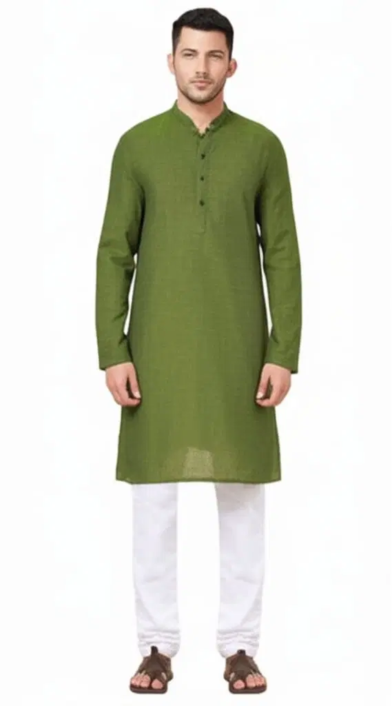 Cotton Blend Solid Kurta with Pyjama Set for Men, Green & White (L) - Buy Online at CityMall