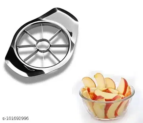 Name: Manual Choppers & Chippers Body Material: Stainless Steel Blade Material: Stainless Steel Ideal For: Fruits Product Breadth: 10 Cm Product Height: 3 Cm Product Length: 10 Cm Net Quantity (N): 1 Heighten corer ring for cutting apple thoroughly. Divide apple into 8 even slices separate. This upgrade apple slicer has 4 welding points on each blade highly attached on the central corer ring, which means it's stronger and more durable for daily using.