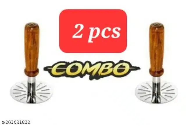 Name: Vegetable/Potato/Pav Bhaji Masher with Wooden Handle 2 PCS