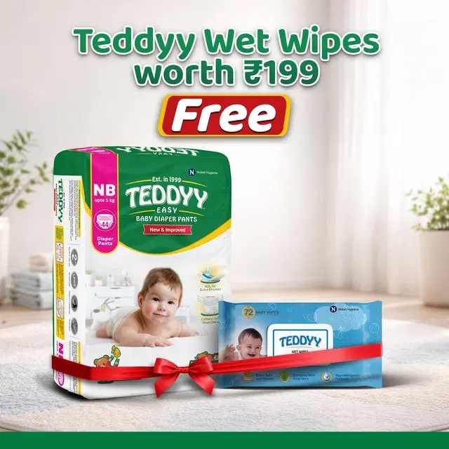 Teddyy Easy Baby Diaper Pants (New Born) 44 Pcs + Free Teddy Wet Wipes (With Lid) 72 Pcs @ ₹199 - Buy Online at CityMall