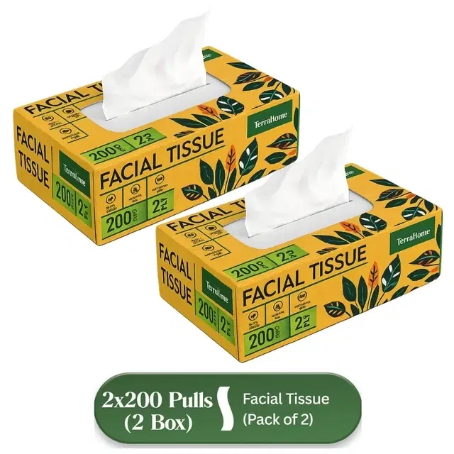 TerraHome Facial Tissue Box, 2 Ply, 200 Pulls [Pack of 2] @ ₹172 - Buy Online at CityMall