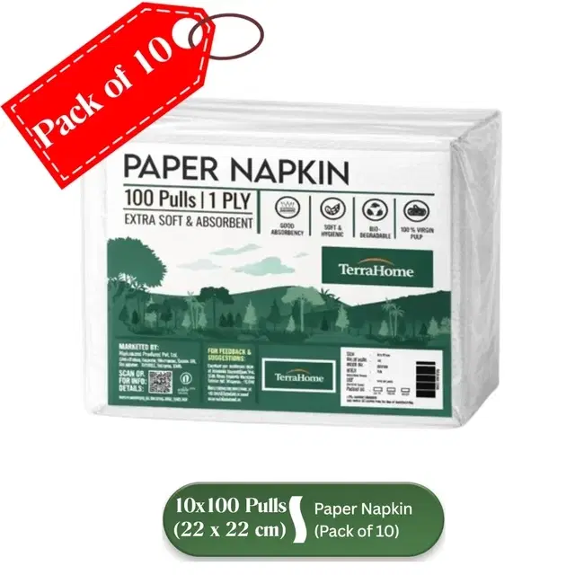 TerraHome Small Tissue Paper Napkins, 1 Ply, 22x22cm [10x100 Pieces] (Pack of 10) @ ₹279 - Buy Online at CityMall