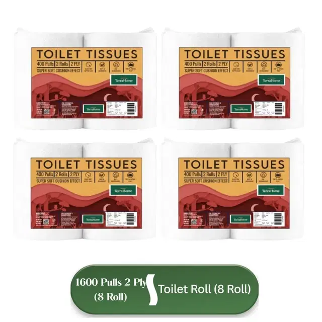 Terrahome Toilet Tissue Paper Rolls, 2 Ply, 400 Pulls [8 X 200 Pulls] [Pack Of 4] @ ₹218 - Buy Online at CityMall