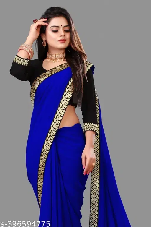 Lycra Solid Saree for Women, Navy Blue @ ₹229 - Buy Online at CityMall