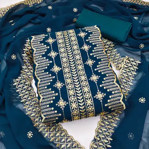 Unstitched Embroidered Dress Material for Women & Girls (Teal Blue) - Buy Online at CityMall